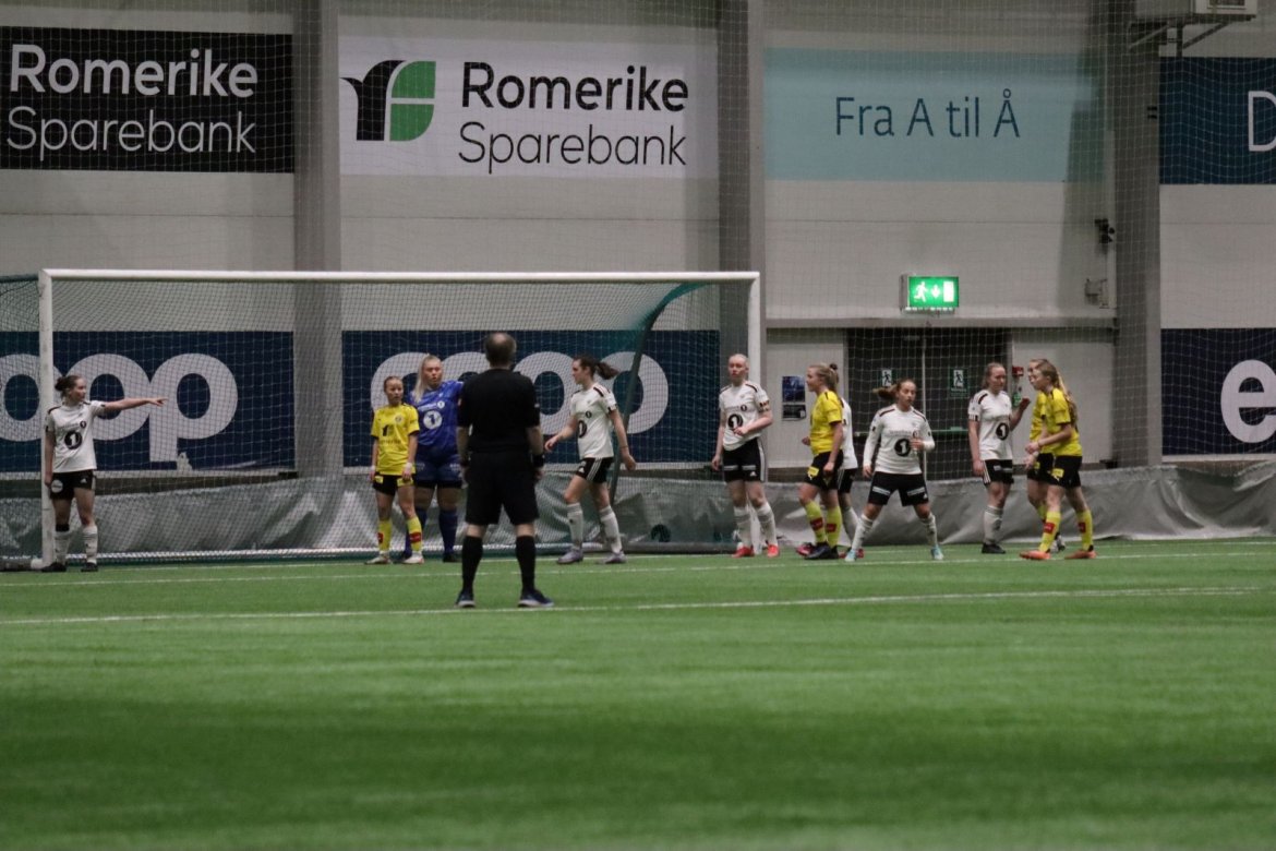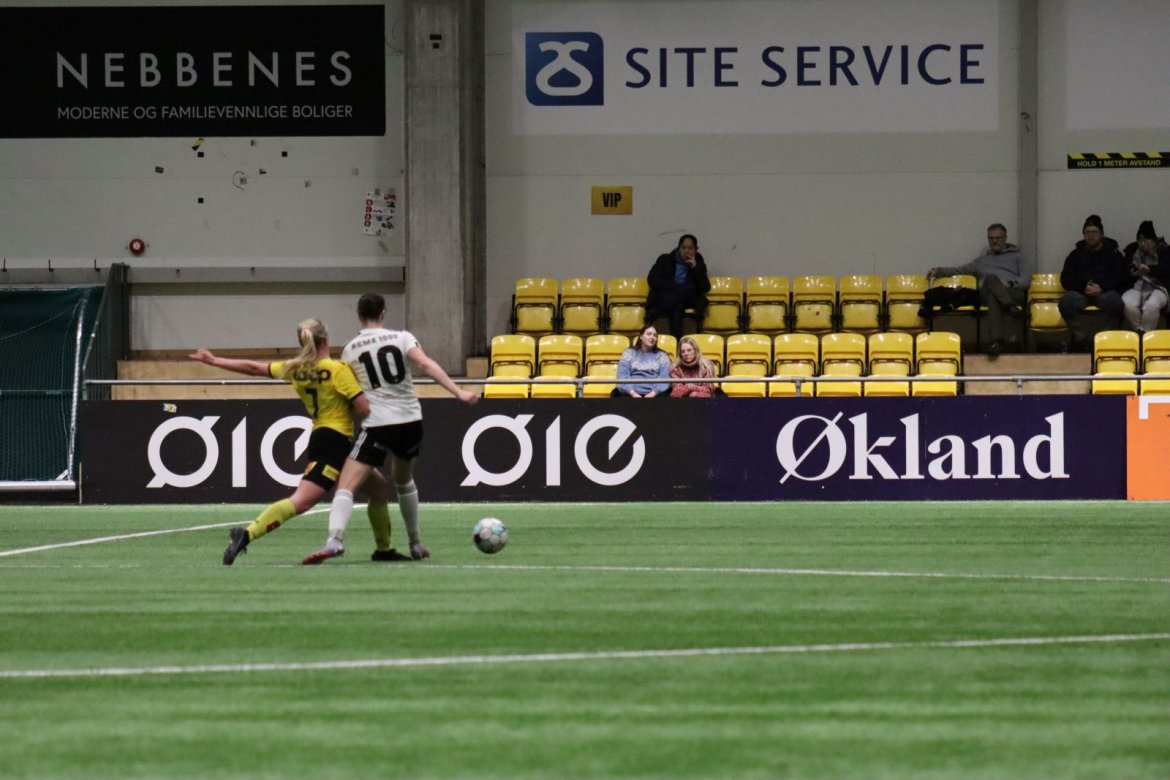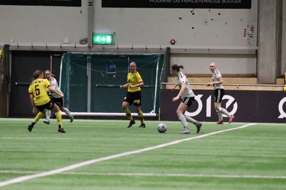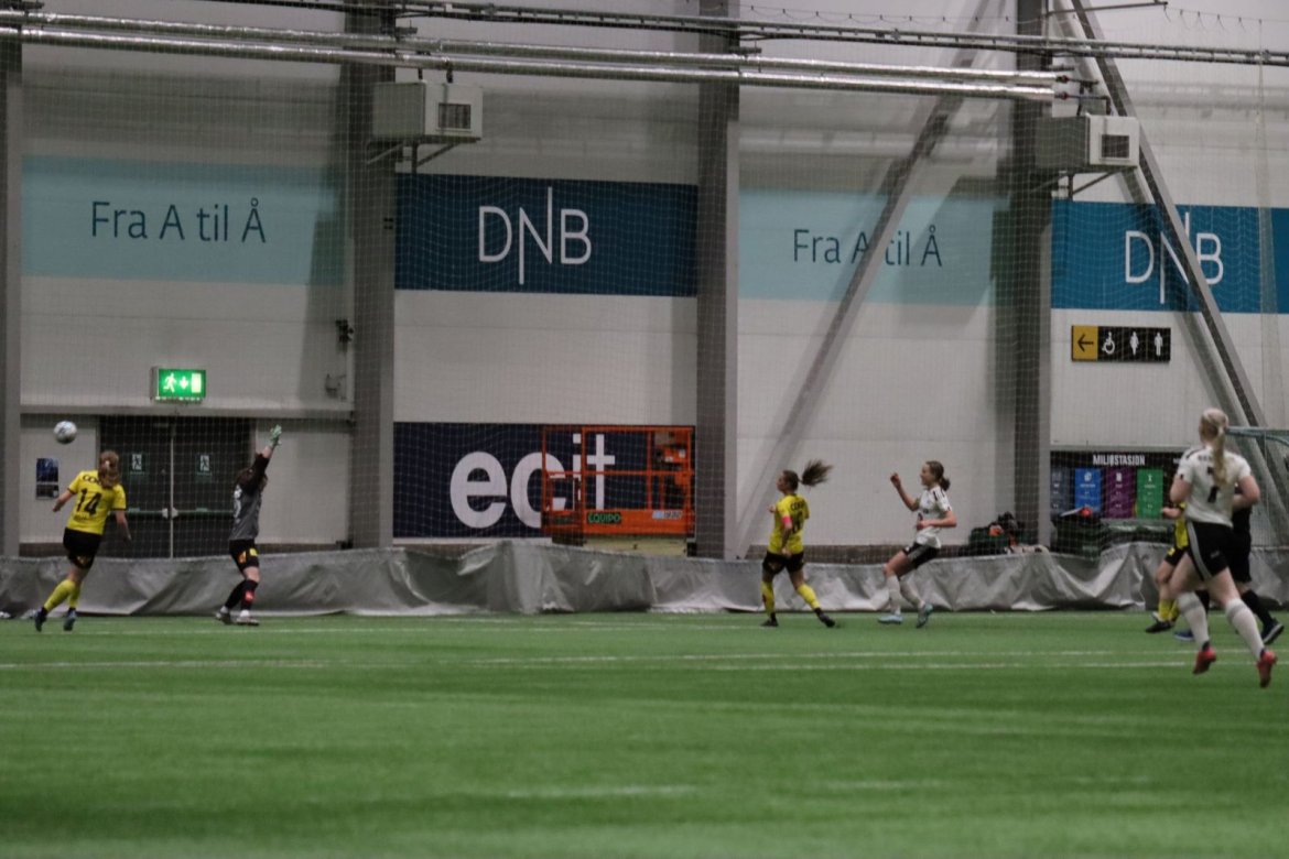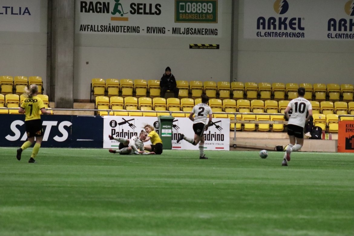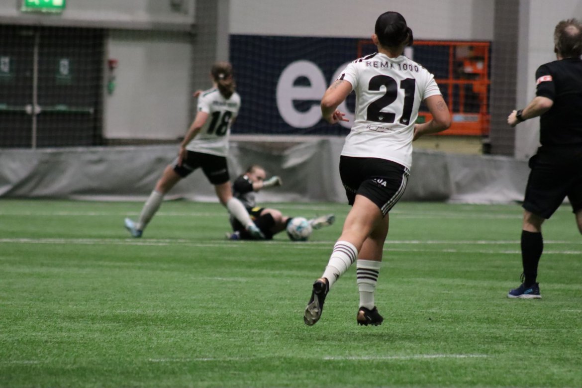 Med kampstart kl. 19.30 er det duket for å brette opp ermene, gjøre et solid stykke arbeid og virkelig blø for drakta. Kampen starter nok en gang med et godt forsvar, og allerede etter 9 minutter lykkes vi i den defensive jobben der vi sideforskyver godt og flytter beina kjapt. Linnea Rustad ser sitt snitt til å snappe ballen fra Lillestrøms forsvarsspiller som fører framover, før hun setter fart nedover høyrekanten. Med høyt tempo gjør hun ingen feil og setter ballen hardt og trygt i mål! Vi åpner med en pangstart, noe som skaper selvtillit og energi i laget. Lillestrøm virker noe rystet, og kampen bølger frem og tilbake hvor begge lag angriper og har målfarlige sjanser. Vi går til pause med 0-1 og føler oss noe tryggere enn sist kamp.