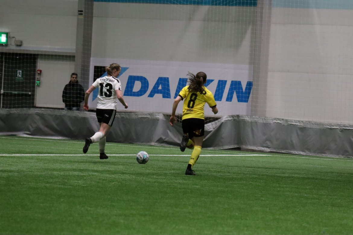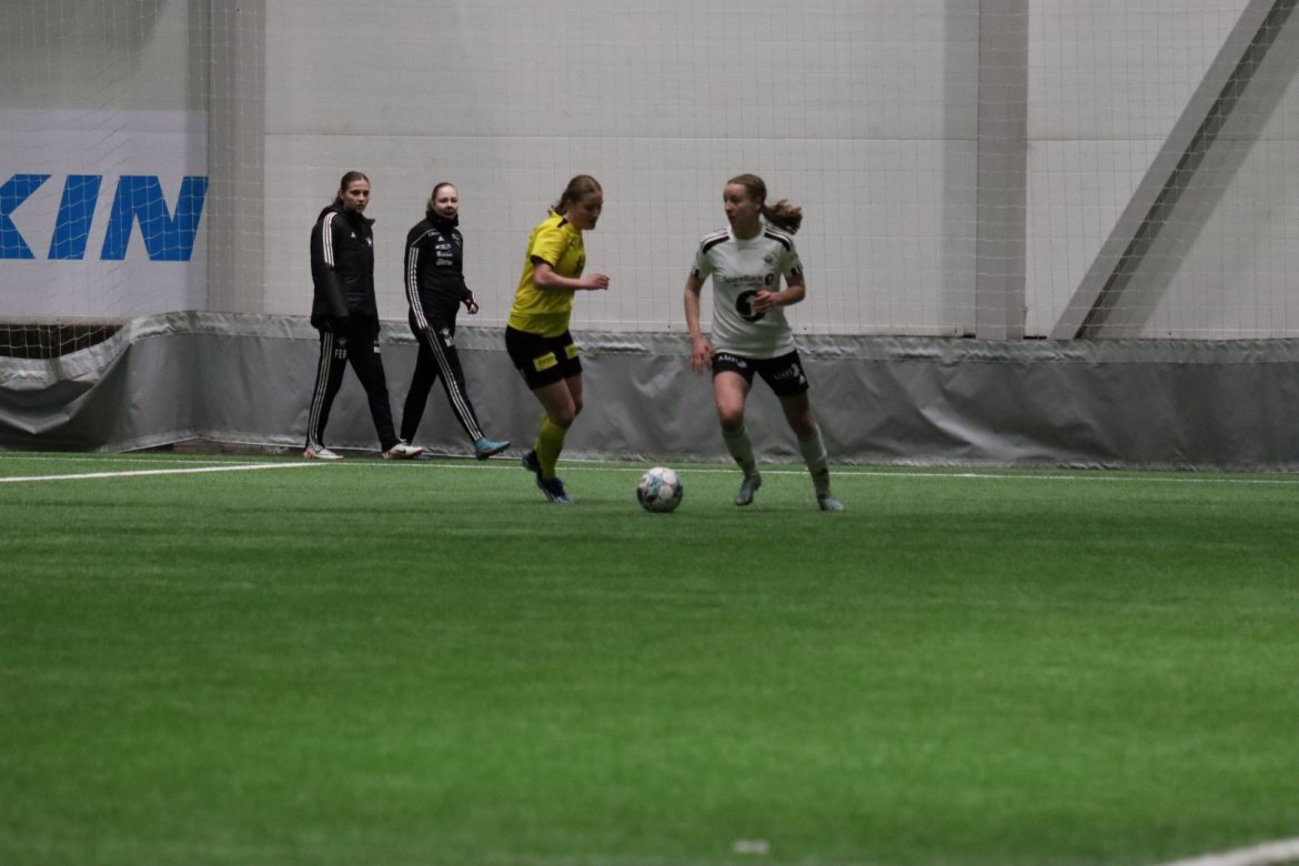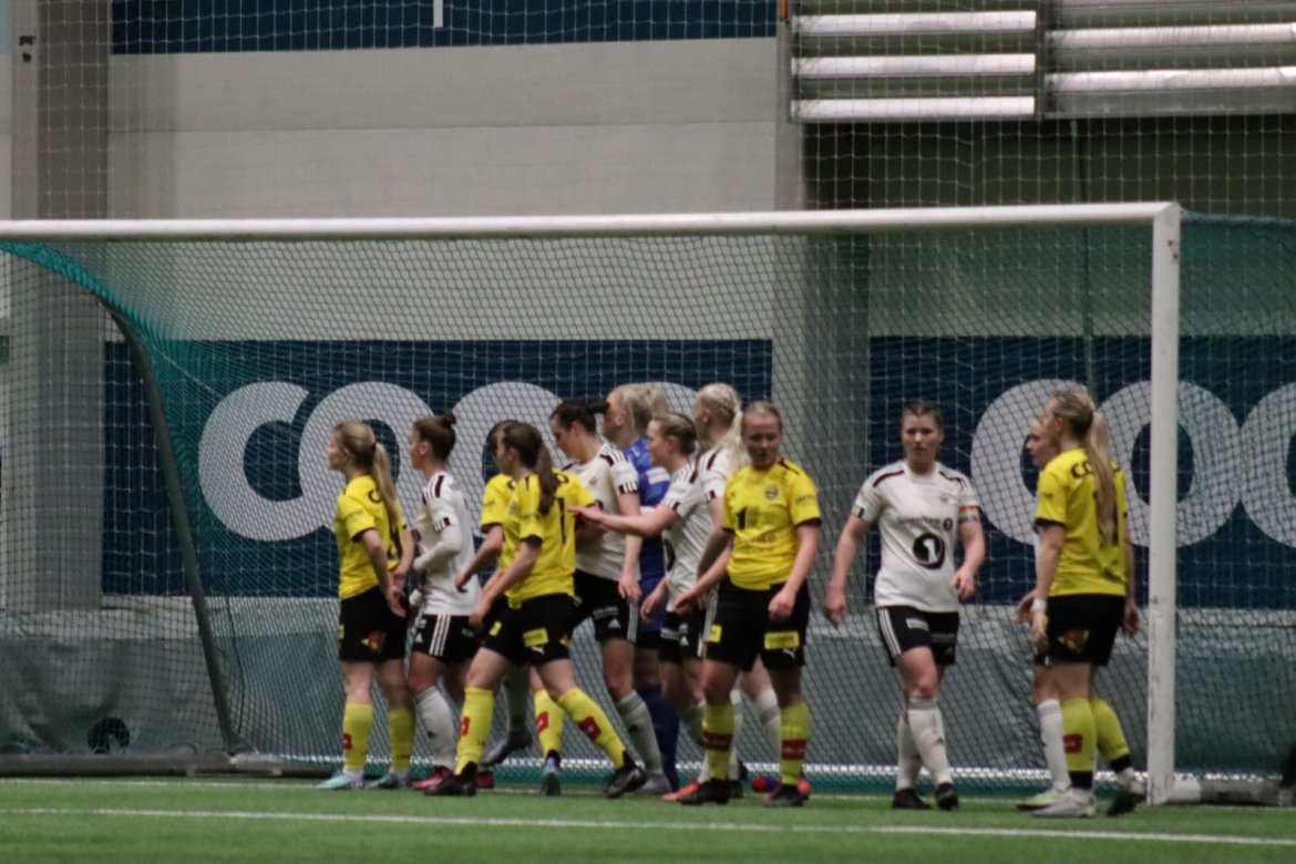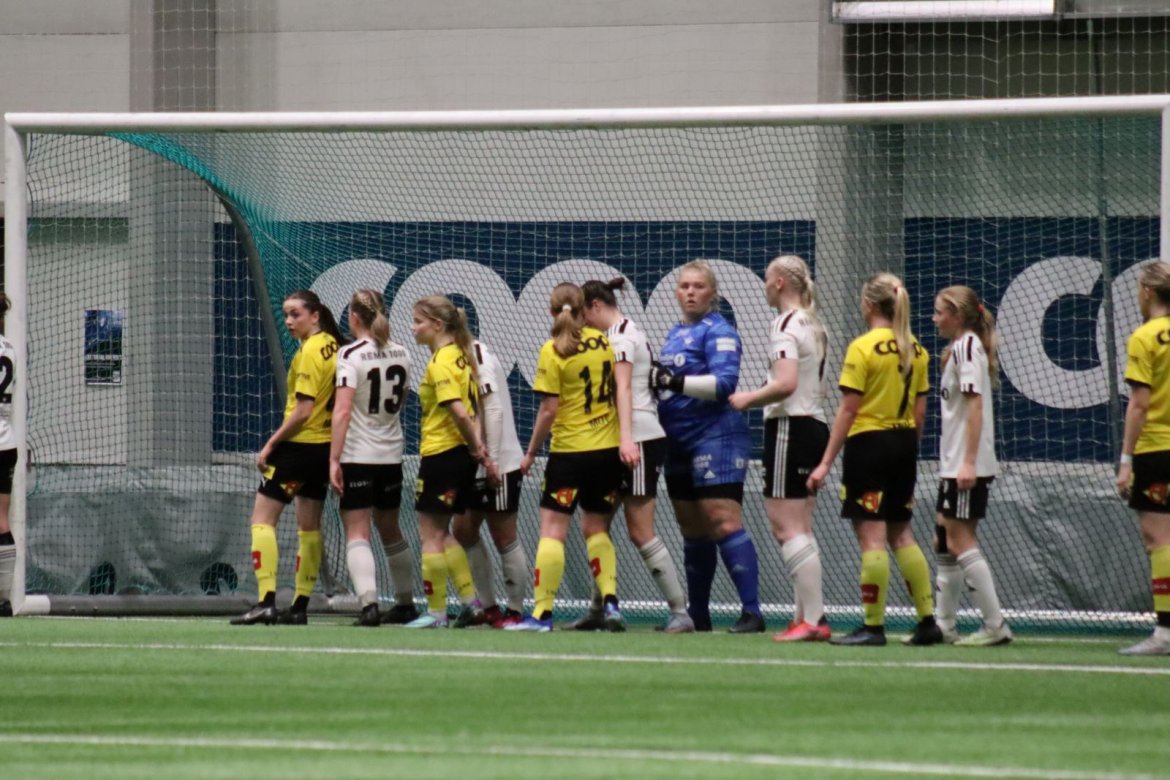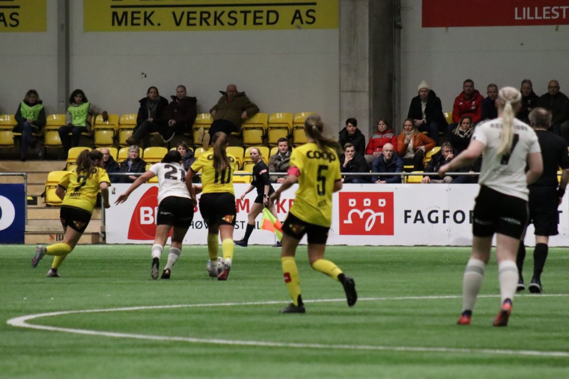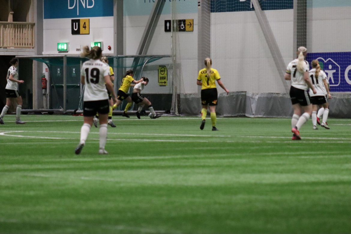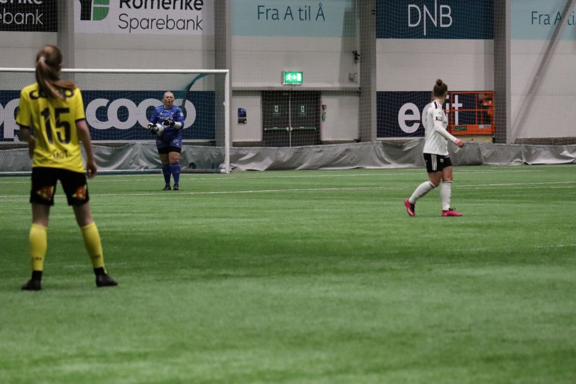 Med kampstart kl. 19.30 er det duket for å brette opp ermene, gjøre et solid stykke arbeid og virkelig blø for drakta. Kampen starter nok en gang med et godt forsvar, og allerede etter 9 minutter lykkes vi i den defensive jobben der vi sideforskyver godt og flytter beina kjapt. Linnea Rustad ser sitt snitt til å snappe ballen fra Lillestrøms forsvarsspiller som fører framover, før hun setter fart nedover høyrekanten. Med høyt tempo gjør hun ingen feil og setter ballen hardt og trygt i mål! Vi åpner med en pangstart, noe som skaper selvtillit og energi i laget. Lillestrøm virker noe rystet, og kampen bølger frem og tilbake hvor begge lag angriper og har målfarlige sjanser. Vi går til pause med 0-1 og føler oss noe tryggere enn sist kamp.