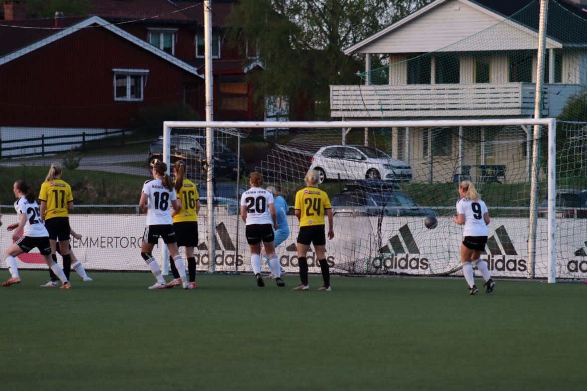 Men så får vi et frispark utenfor 16-meteren til Ottestad helt på tampen av kampen. Vi har allerede scoret ett vakkert mål på dødball, og dette skal igjen være oppskriften på mål i Elverum. Både tribune og innbytterbenk settes i fyr og flamme da Nora Eriksson nok en gang er framme med silkefoten. Med nerver av stål settes ballen i en lekker bue over både mur og keeper, og Elverum går opp i 2-1 to minutter på overtid. Det ser ut til at vi drar i land seieren, men i jubelrusen rekker vi ikke en gang å lande før motstanderen utnytter seg totalt av alt adrenalinet i Elverum. Etter et langt avspark er spissen plutselig alene med vår keeper Christina, og utlikner dessverre bare SEKUNDER senere. Aldri har vi på hjemmebenken opplevd en kaldere dusj, og gledestårene ble omgjort til sorg da dommeren blåser av kampen rett etter vårt avspark. Sluttresultatet ble derfor 2-2 og enda et uavgjort lokaloppgjør.