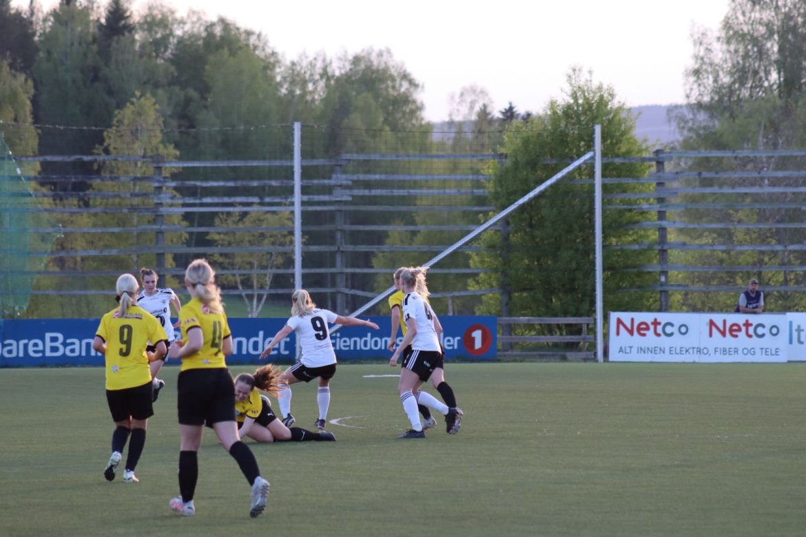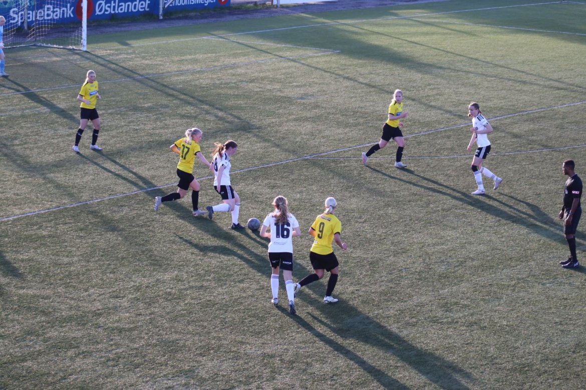 Den andre omgangen fortsetter som den første, og krydres med mål! Elverum er laget som har initiativet i kampen og styrer det meste som skjer i starten, men det skapes farligheter i begge ender. Det gjøres noen bytter tidlig i omgangen grunnet småskader og annet småtteri, og det er nettopp to innbyttere som skal til for å få inn det første målet! Etter 67 minutter får vi corner der silkefoten til Nora Eriksson serverer ballen på sølvfat til Alina Øien som setter ballen i mål og det står 1-0. Vi gjør et bytte der Nora Merli Moen får sin debut for A-lag Damer i seriespill, og hun gjør en god figur de siste tjue minuttene. Etter 82 spilte minutter får vi oss en i fleisen der laget sover på en corner imot. Ballen går over hele feltet og sparkes tilbake igjen inn i feltet hvor en gul og sort får en tå på ballen, og 1-1 er et faktum. I de neste fem minuttene har Ottestad et momentum, og vi er farlig nære ved å slippe inn enda et mål. Vi klarer heldigvis å holde unna, og det ser lenge ut til at dette ender uavgjort.