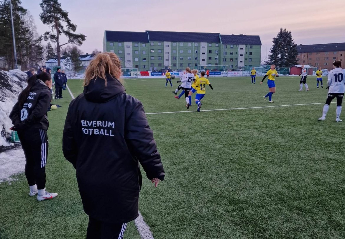 For egen del er vi trygge og gode i bearbeidingen som var vårt fokus i denne kampen. Vi styrer spillet og har mest ball gjennom de største delene av kampen. Vi ser det at vi trenger mer tid på stor bane før alt skal sitte optimalt, men vi er utrolig takknemlige for at vi kan spille kamper på stor bane når dette ikke er en del av egen treningshverdag.