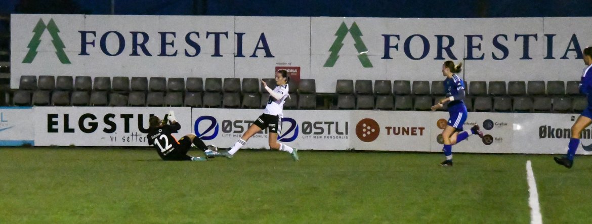 Dessverre manglet det siste på å omsette det til scoringer. Først i siste minutt av første omgang fikk vi en scoring på et nydelig frispark fra Nora Værdal Eriksson. Det ble kampens eneste mål. Vi hadde god defensiv kontroll gjennom hele kampen og Løten slapp aldri til noen store målsjanser. Søndag møtes vi igjen til returoppgjør på Løten stadion. Vi gleder oss!