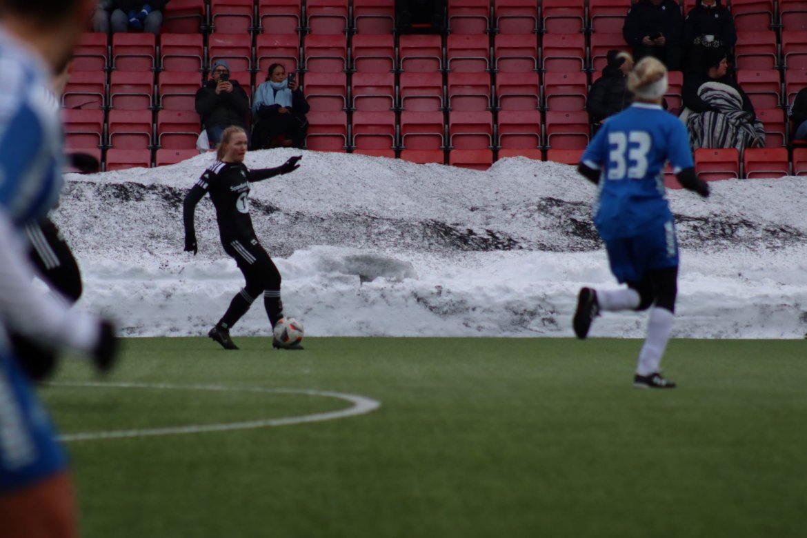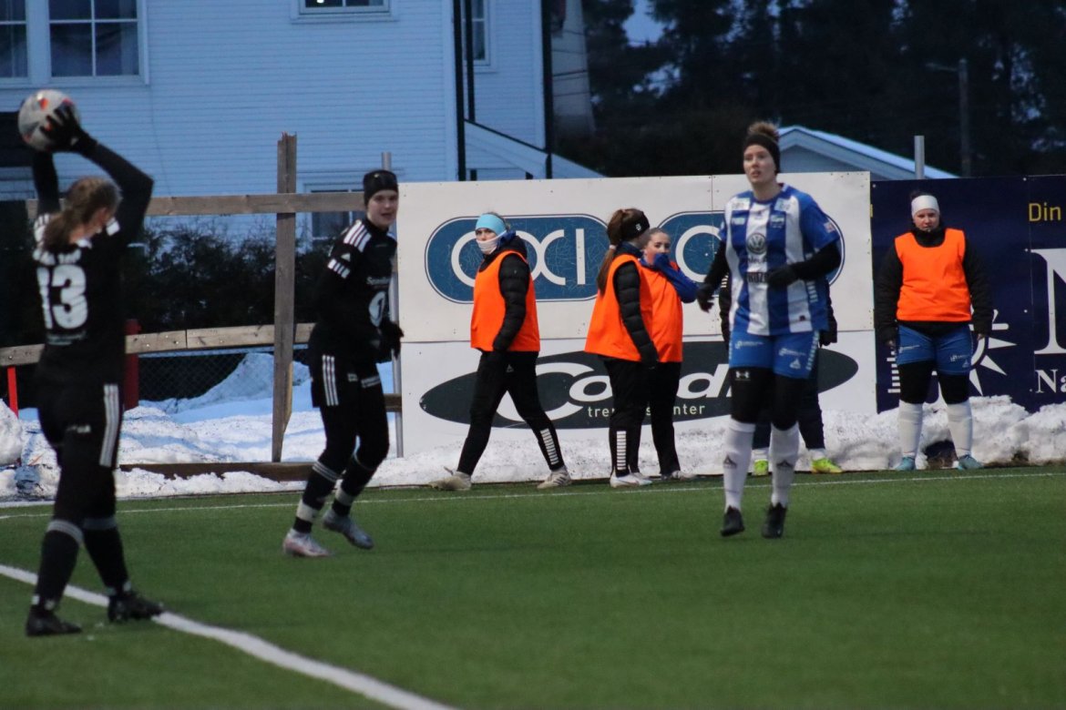 Vi går ut til 2. omgang med en ro og en trygghet der vi maler motstanderen i fillebiter. Vi finner enklere kombinasjoner og alle er mer tro til sin posisjon og stoler på at lagvenninna gjør jobben. Etter hvert som Sarpsborg sprekker opp, begynner de virkelige målsjansene våre. Et tverrliggertreff av Nora Eriksson på frispark setter standarden, og laget får blod på tann. Det må likevel komme et halvhøyt innlegg som får en gufsen medvind over Sarpsborgs keeper i det 66. minutt før vi scorer! Forsvarskjempen Camilla Larsen som har tettet lukene bakover i hele kvaliken får den store ære av å få hull på byllen, noe som er vel fortjent! Etter dette skaper vi sjanse på sjanse. I det 83. minutt er det vår toppscorer i kvalifiseringen, Linnea Rustad som varter opp med nok scoring fra øverste hylle. Hun nekter å spille uten å score, og står derfor med mål i 3/3 kvalifiseringskamper. Kun ett minutt senere settes kronen på verket og prikken over i’en med en scoring i det 84. minutt. Vår hærfører Anna Brunstad setter ballen i kassa, noe som er svært fortjent med tanke på hennes betydning for laget med sin veiledning på banen, prestasjoner og hjemmelagde egentreningsprogram utenfor.