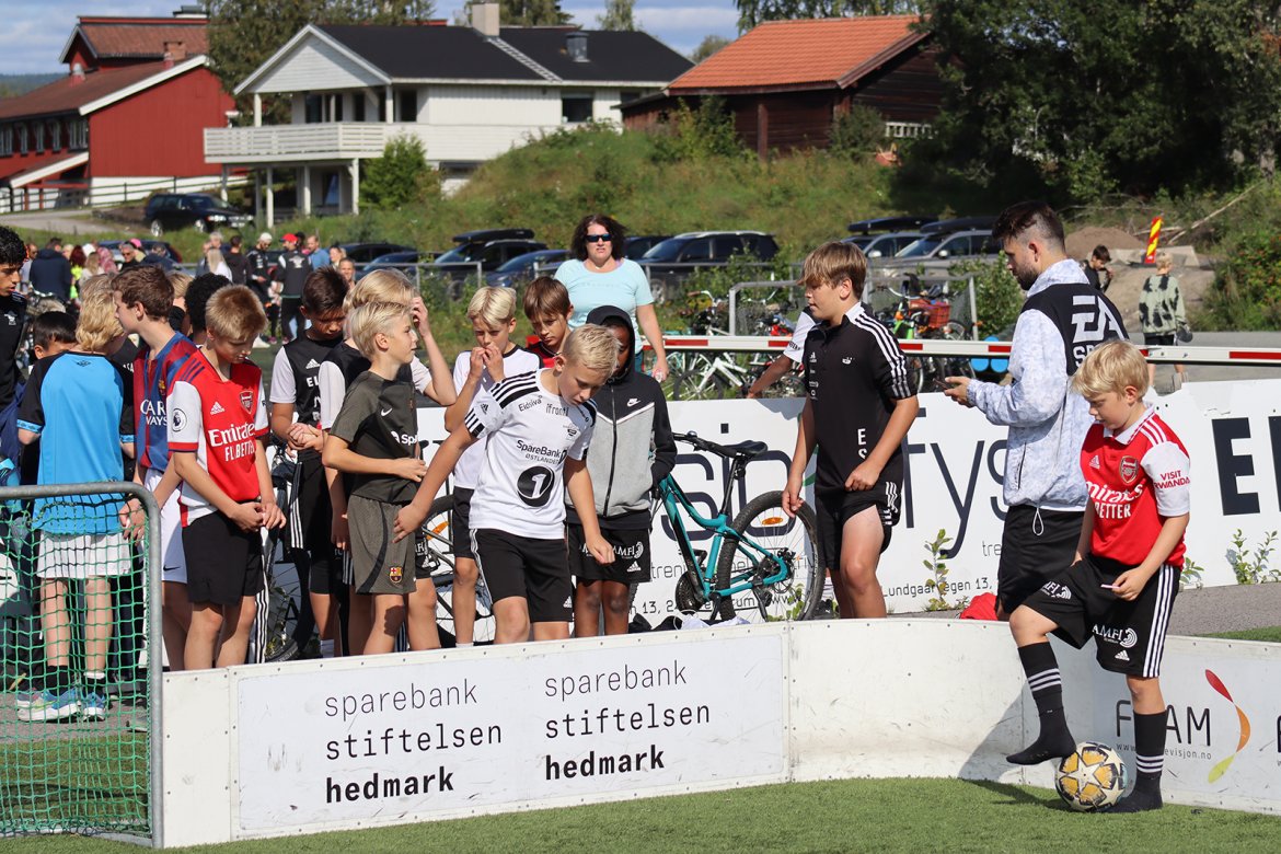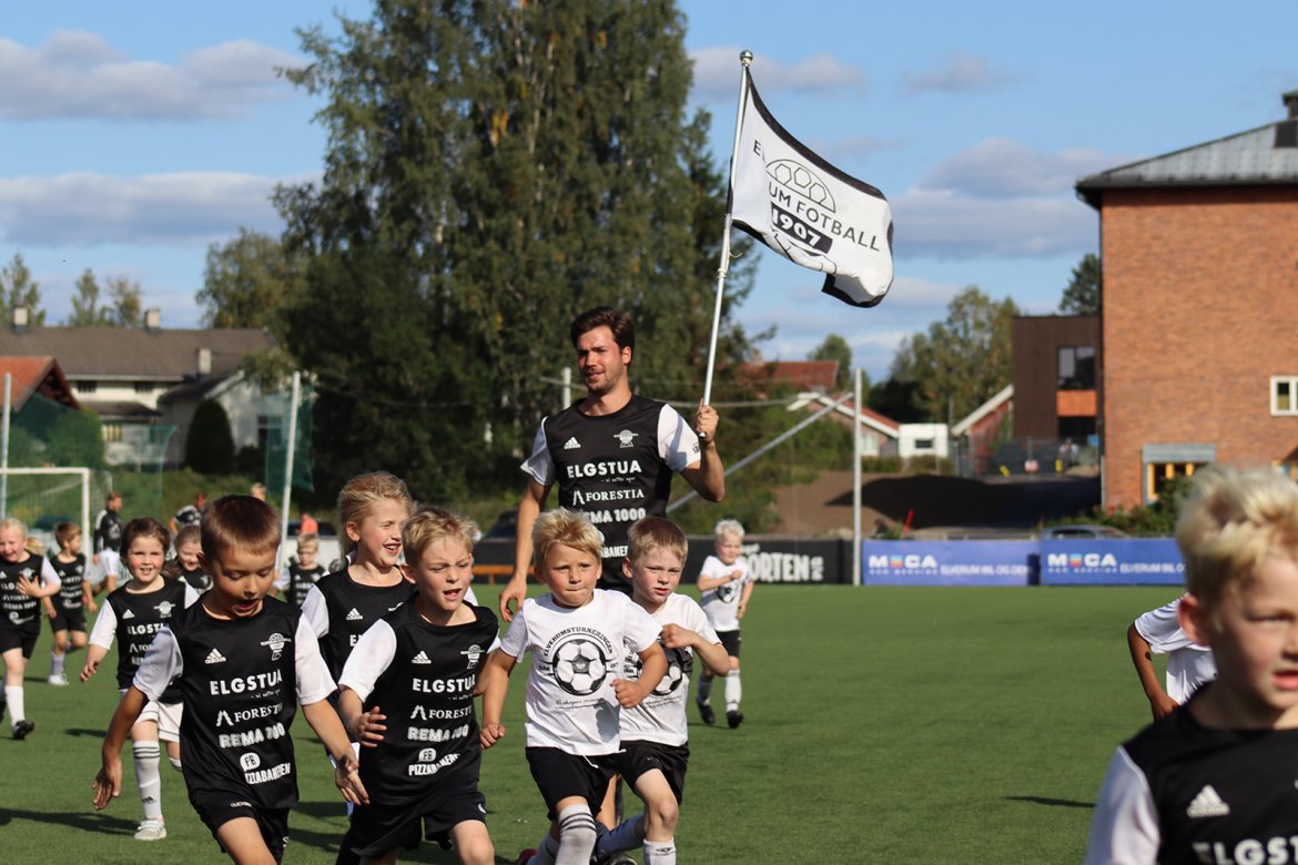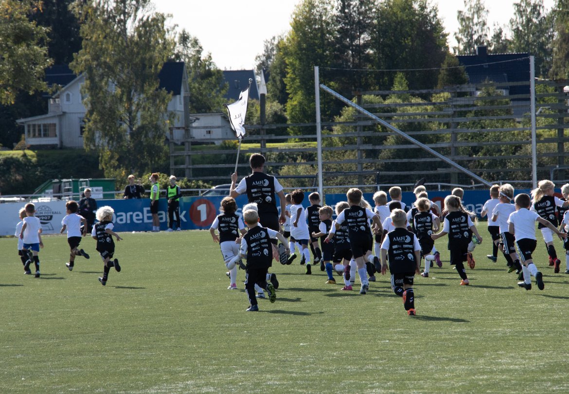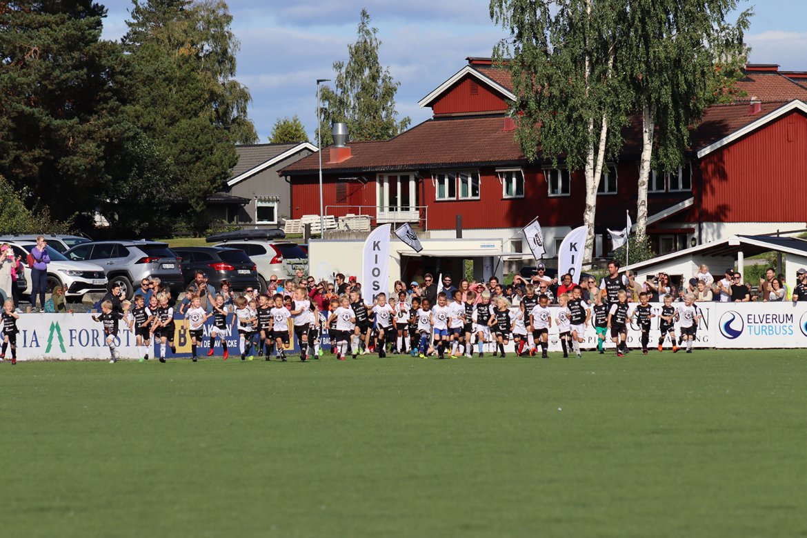 Rett før kamp gjentok vi fjorårets 6-årsslipp der alle 6-åringene som deltok på turneringen sprang over banen til applaus fra de som hadde kommet for å se kampen. Det er gøy å se innsats, glede og ikke minst stoltheten til barna i det de løper over banen til applausen som normalt sett gis til de voksne spillerne.