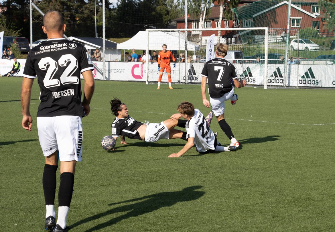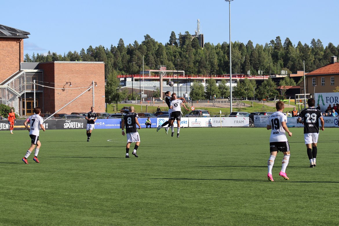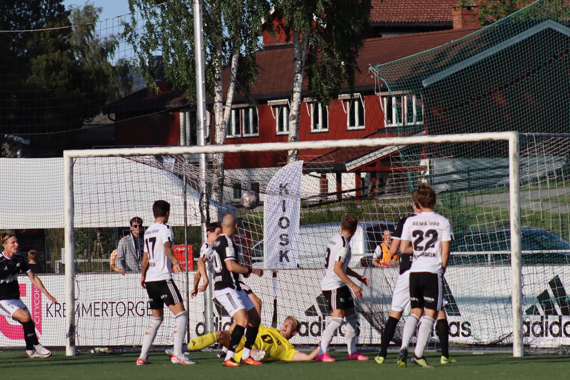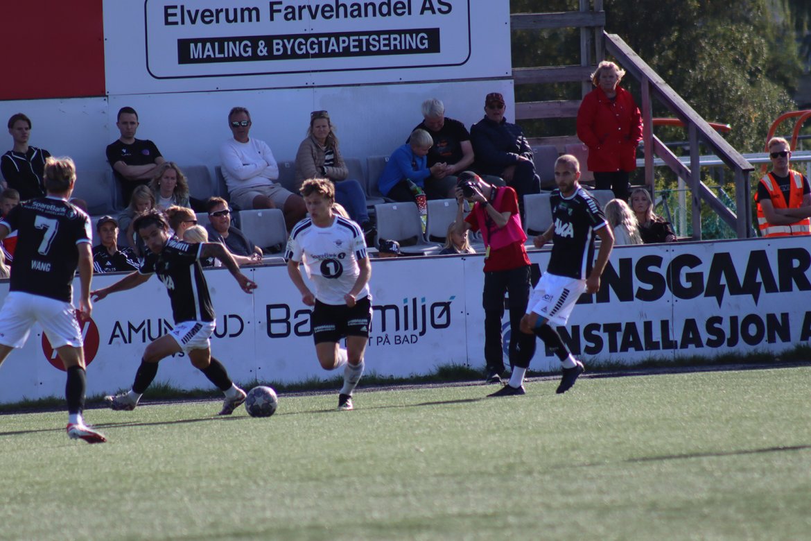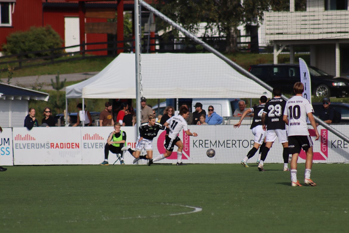 Fotballkampen startet helt perfekt for vår del, når Sondre Løvberg blir felt innenfor 16 meteren og Nelsinho ekspederer straffen i mål allerede etter 6 minutter var det mange som tenkte at her kommer årets første Hønefosstap. Og sett med Elverumsøyne så kunne det fort ha gjort det, men der vi er litt for unøyaktige foran mål i avgjørende situasjoner er Hønefoss ekstremt effektive. Av store målsjanser teller vi 4-4 og Hønefoss går seirende ut 3-1 tilslutt. Men det er en god kamp, der vi er på høyde med og også mye bedre enn Hønefoss i perioder av kampen. Og det er en følelse vi skal ta med oss videre når Hønefoss helt klart hører hjemme i minst en divisjon høyere. Dessverre er det Hønefoss som tar alle poengene med hjem, men vi leverer en god kamp for et veldig stort publikum og ikke minst så ser det ut som om de som var på stadion koste seg om kapp i sola.