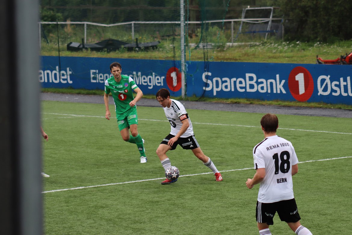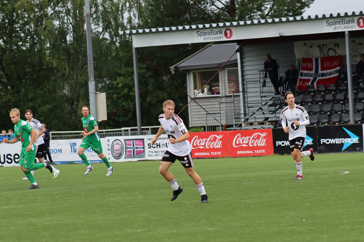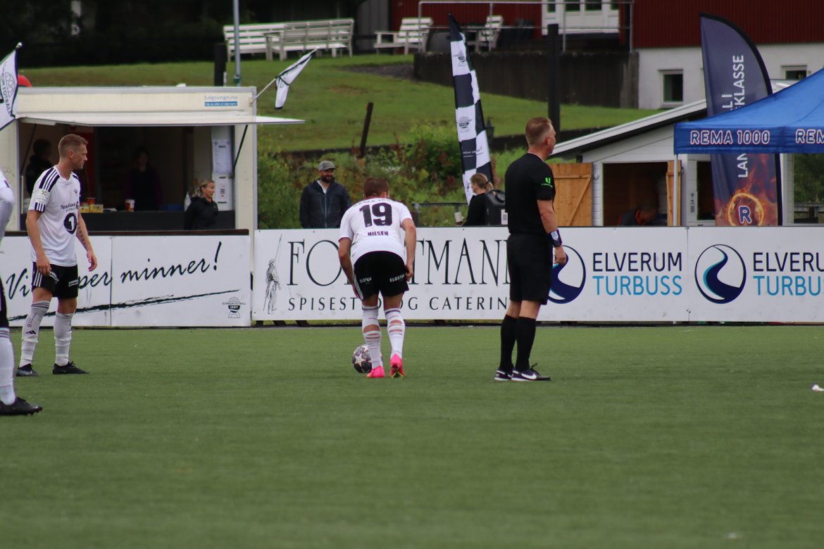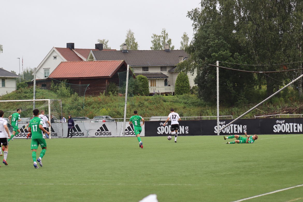 Vi fortsetter med full kontroll ut omgangen og går til pause med en liten knut i magen etter at Espen Olsen ble kvestet rett før pause og ligger og skriker. Det er nok mange som drar minnet litt tilbake til kampen mot Hødd 2 der Vladi ble liggende lenge med brudd i kragebeinet.