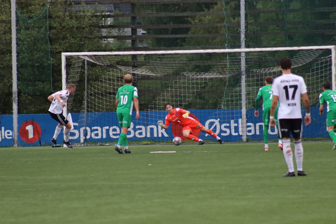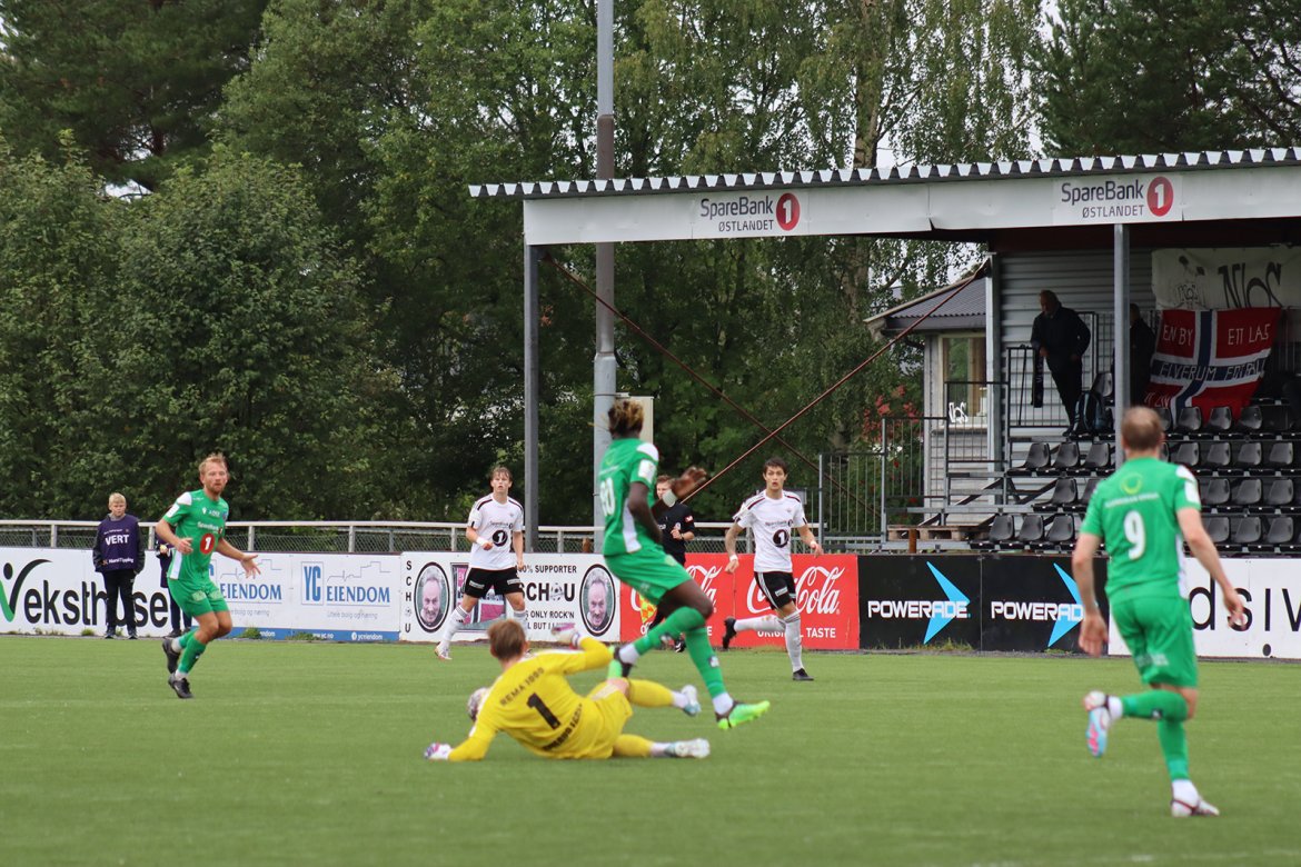 Vi setter første scoringen med Nelsinho som blir spilt igjennom av Tommy Nilsen da han vinner ballen høyt. Alene med keeper gjør Nelsinho ingen feil og det står 1-0.