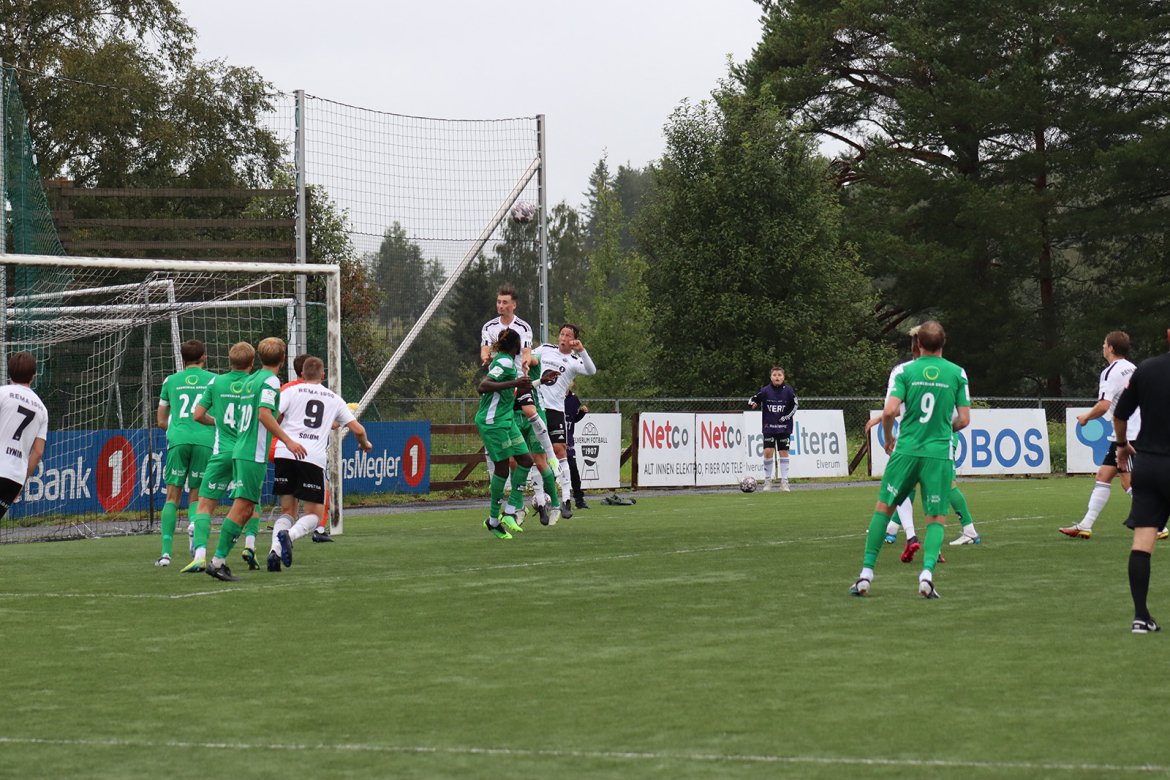 Vi er best fra første spark på ballen mot Volda. Selv om Volda er frempå noen få ganger tidlig så tar vi raskt kontrollen og vi produserer mange sjanser i første omgang.