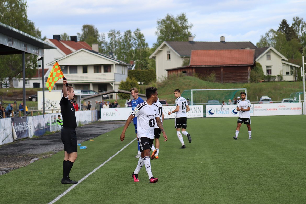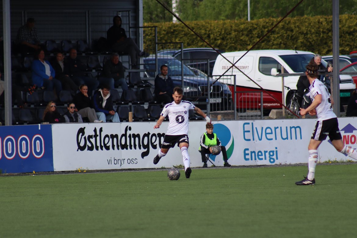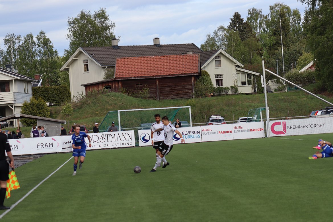 Dette er også ståa til pause der begge lag har vært frempå med flere farligheter. Et Elverum stadion som er fyllt opp overraskende bra til at det var 2. pinsedag og æftaskamp har en positiv stemning som ligger tjukt utenpå de som er tilstede. Det var noen som ikke var helt "in the mood" men mistenker at disse kom fra Brumunddal. Nå skal ikke vi peke nese til noen, da vi har vært godt nede noen uker selv. Men det er absolutt artigst å vinne!