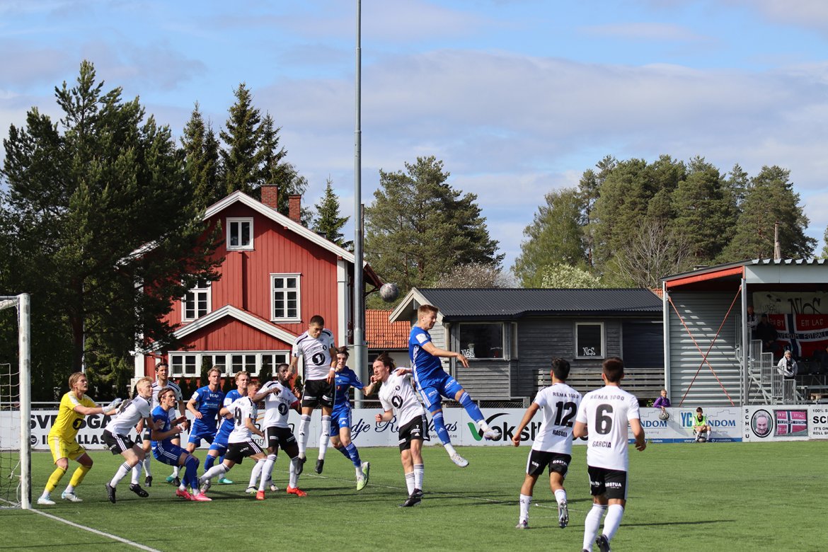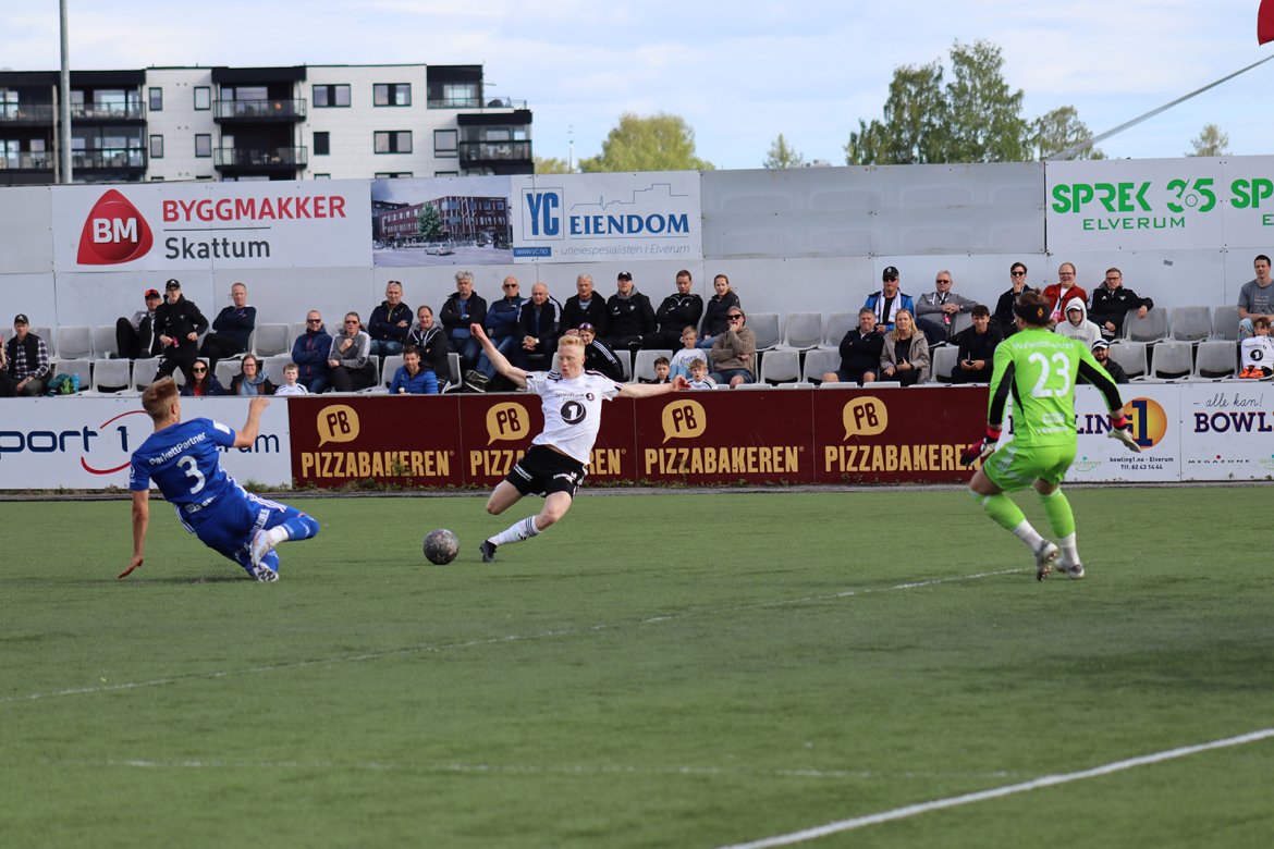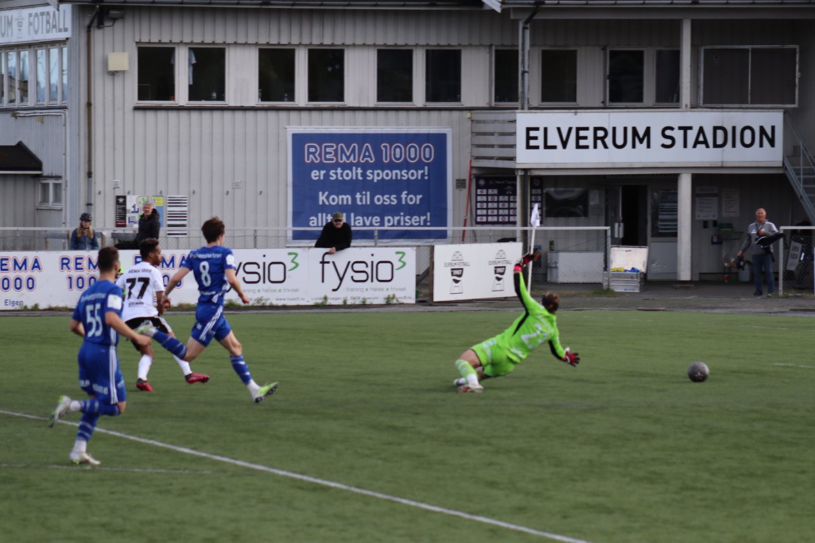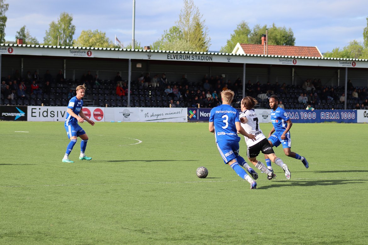 Dette er også ståa til pause der begge lag har vært frempå med flere farligheter. Et Elverum stadion som er fyllt opp overraskende bra til at det var 2. pinsedag og æftaskamp har en positiv stemning som ligger tjukt utenpå de som er tilstede. Det var noen som ikke var helt "in the mood" men mistenker at disse kom fra Brumunddal. Nå skal ikke vi peke nese til noen, da vi har vært godt nede noen uker selv. Men det er absolutt artigst å vinne!