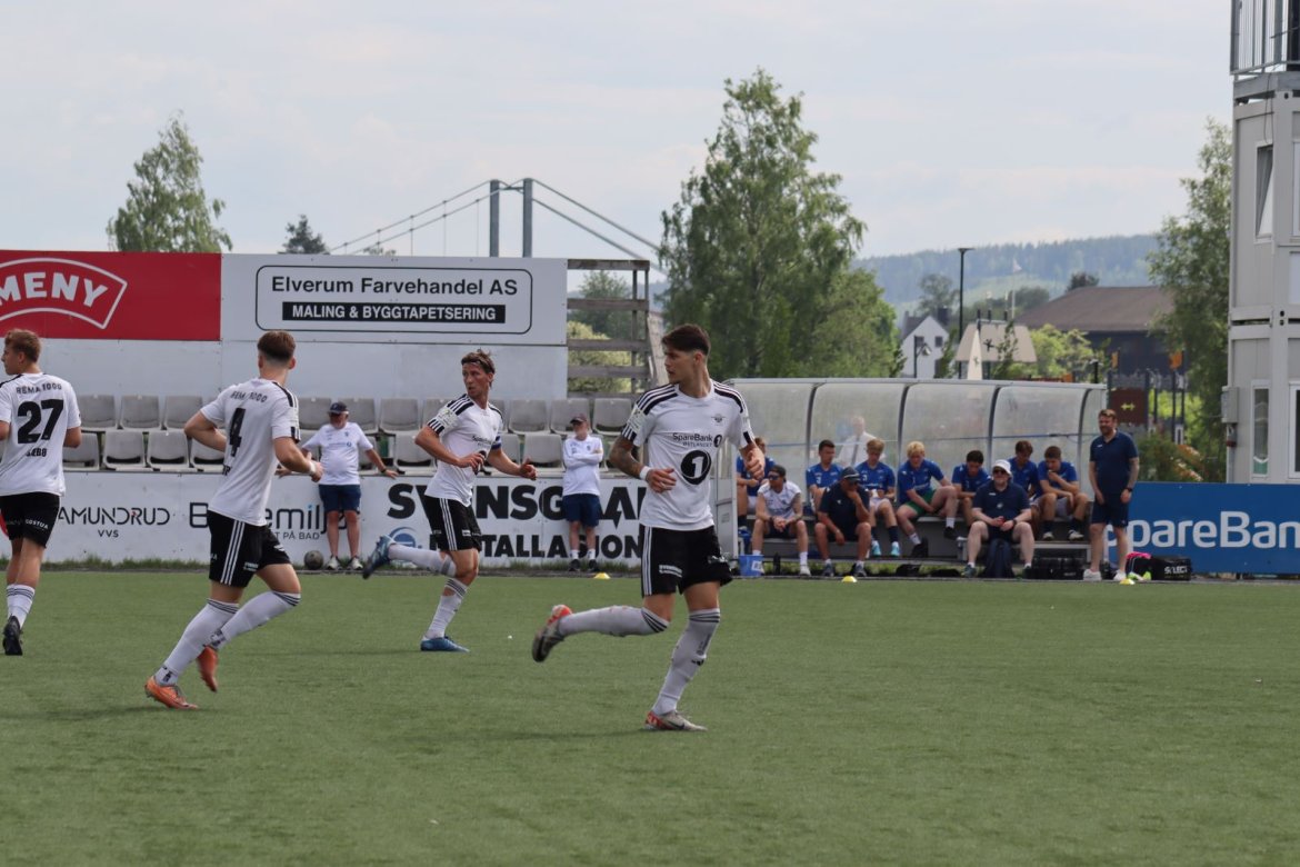 Det er moro på Elverum stadion nå. Publikum får se et offensivt lag med flere fine kombinasjoner.