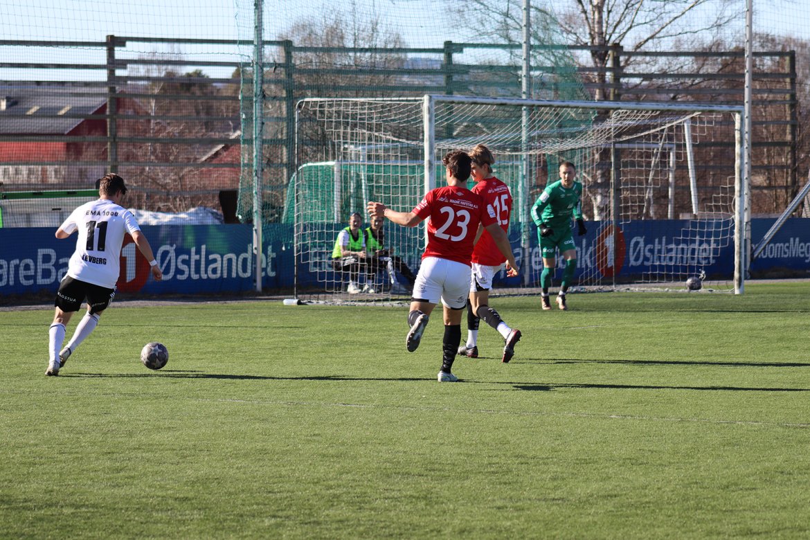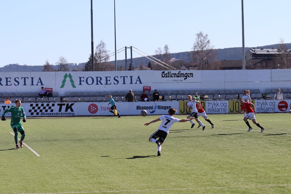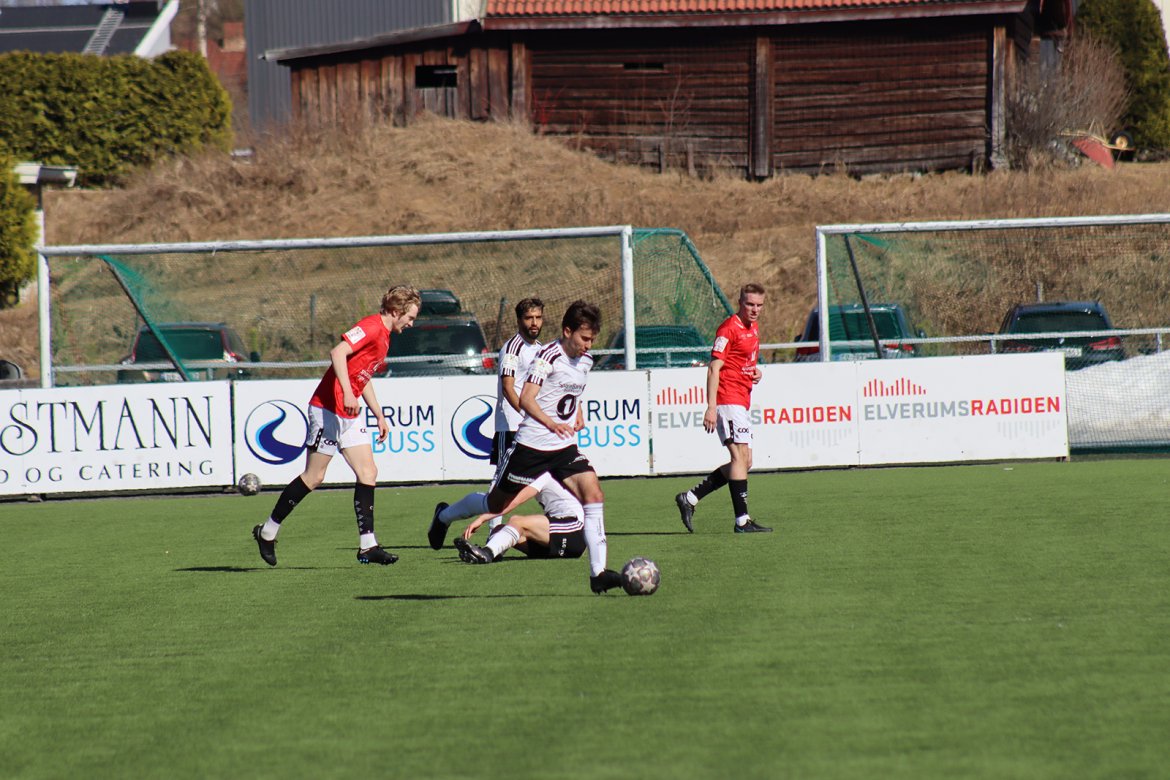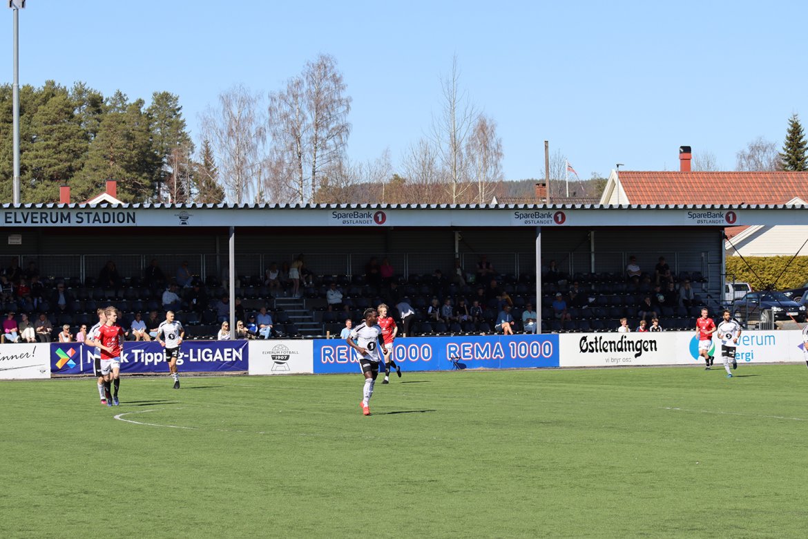 For den som ser på med Elverums-øyne så har vi full kontroll fra start til slutt, og vi produserer voldsomt med både store og små sjanser. Vi får minst 3 annulerte scoringer som selvfølgelig ser feil ut der og da. Noen av dem ser sågar feil ut også når man ser på reprisen, men vi får la det passere for denne gang. For de som har sett begge kampene så langt i år så får vi endelig se at de pasningene som har blitt akkurat for korte eller for lange tidligere i år, de treffer. Andreballene de kjemper vi oss til, skudd og headinger sitter.