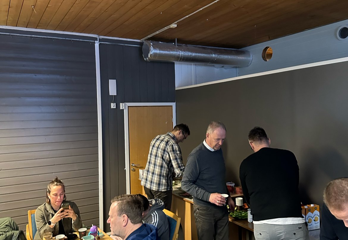 Det var god stemning, mye summing og ikke minst god gammeldags frokost med kneip, ost og skinke på klubbhuset på fredag da Markedssjef Henning Myrer inviterte til frokostmøte.